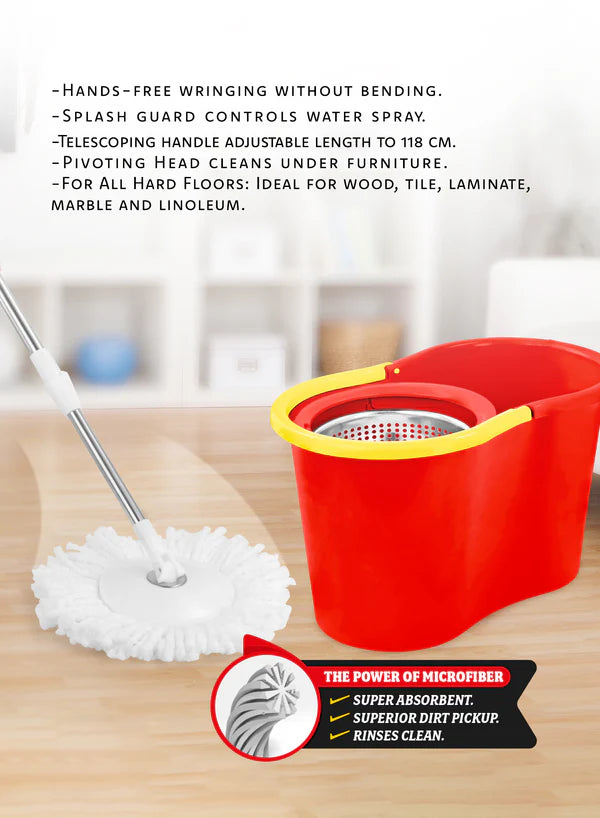 -Easy to use: The spinning mechanism of the metal wringer makes it easier to wring the mop head out