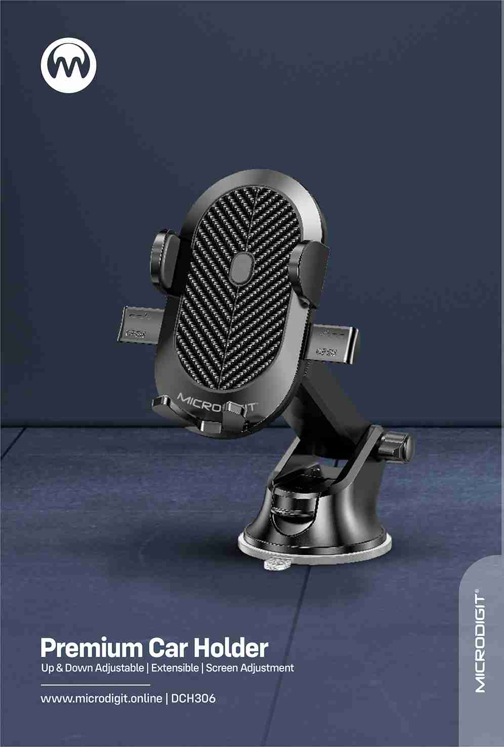 The all new Microdigit» Suction cup car holder will give you a perfect solution for using mobile phones in your car. Product with Up and down adjustment, free vertical and horizontal screen adjustment and Push switch which will makes easy to use.